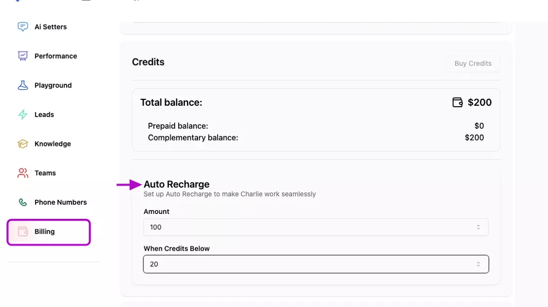 New operational upgrades mean no more service interruptions. Auto recharge for credits kicks in automatically so Charlie keeps engaging leads around the clock while you focus on closing deals.